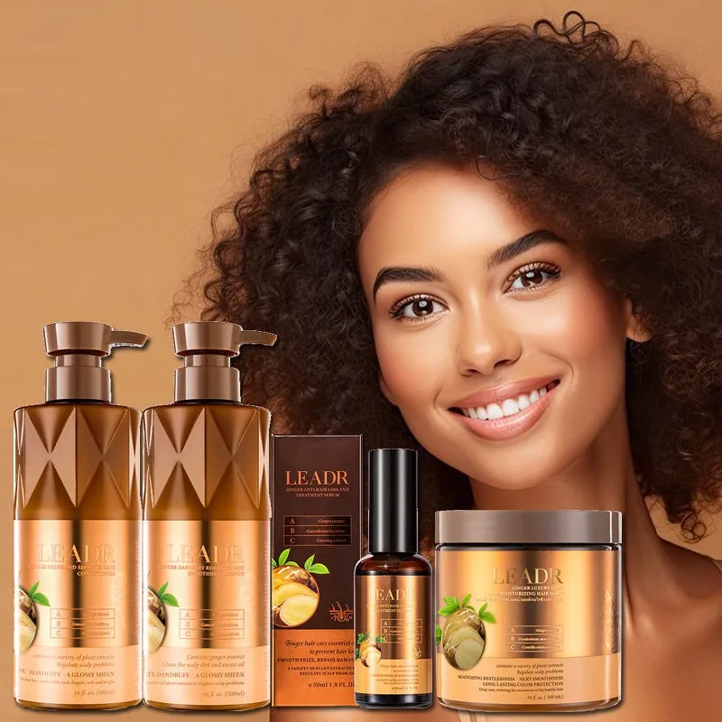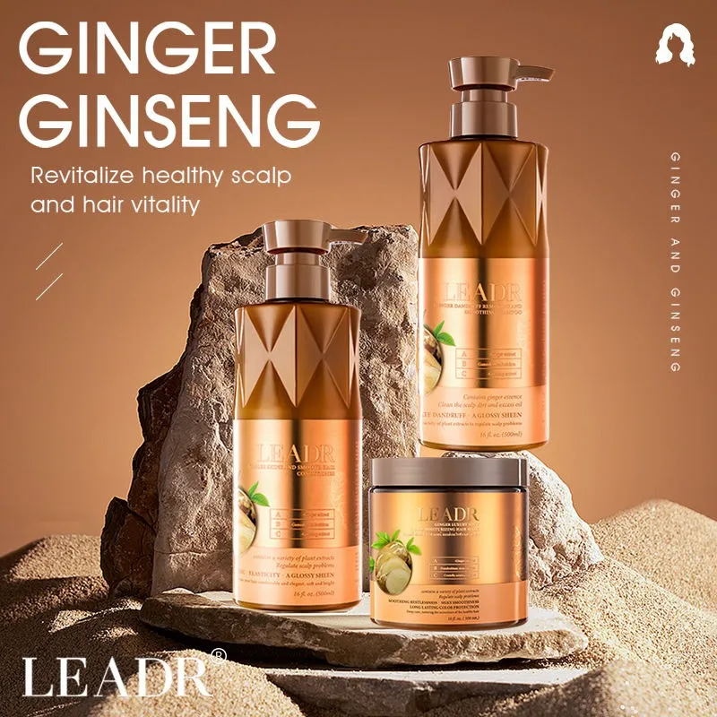 Transform your hair care routine into a revitalizing ritual with the LEADR Ginger Ginseng collection. This set, including a nourishing shampoo, fortifying conditioner, and deep-conditioning hair mask, is specifically formulated to address both scalp health and hair vitality. The potent combination of natural Ginger and Ginseng works synergistically to stimulate your scalp, strengthen hair from the root, and enhance overall hair vitality. This formula helps to reduce damage and adds a natural, glossy sheen to every strand. Housed in elegantly designed bottles, this collection offers a truly luxurious experience and delivers on its promise of promoting a healthy, revitalized scalp and strong, beautiful hair.